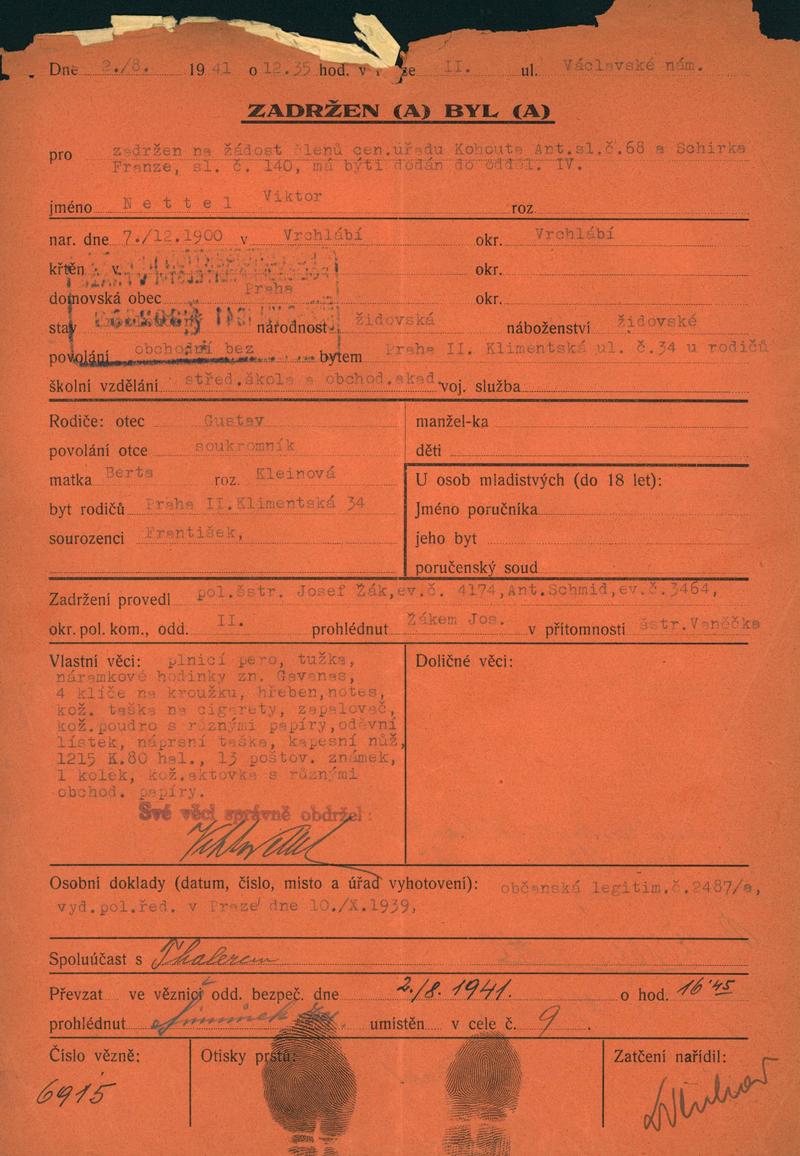 National archives Prague > Police Directorate Prague > 1941-1950 > N > Nettel Viktor