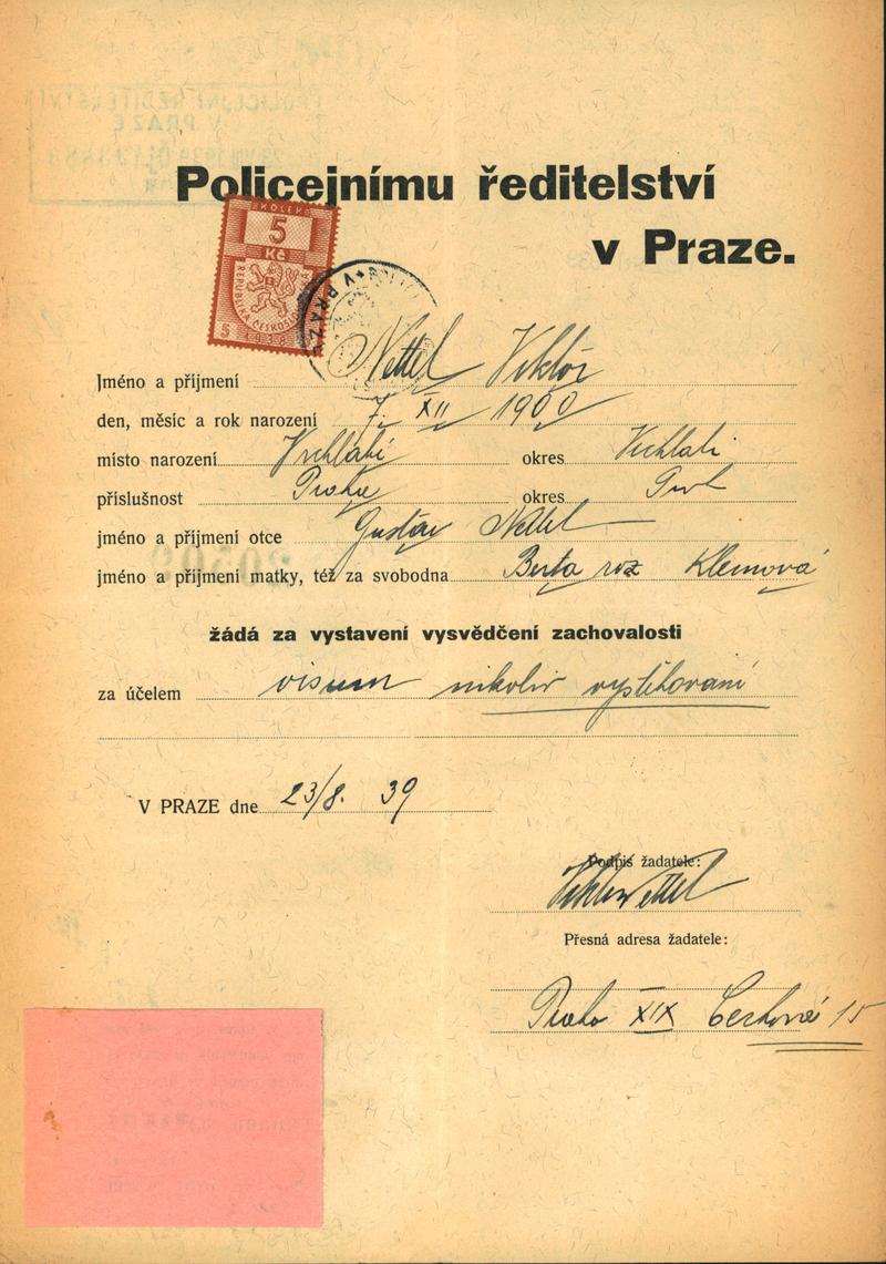 National archives Prague > Police Directorate Prague > 1941-1950 > N > Nettel Viktor