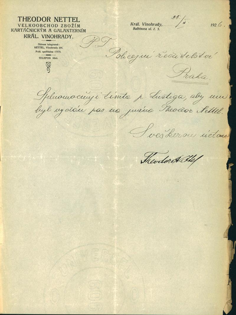 Nettel Theodor: Plná moc k vyzvednutí cestovního pasu