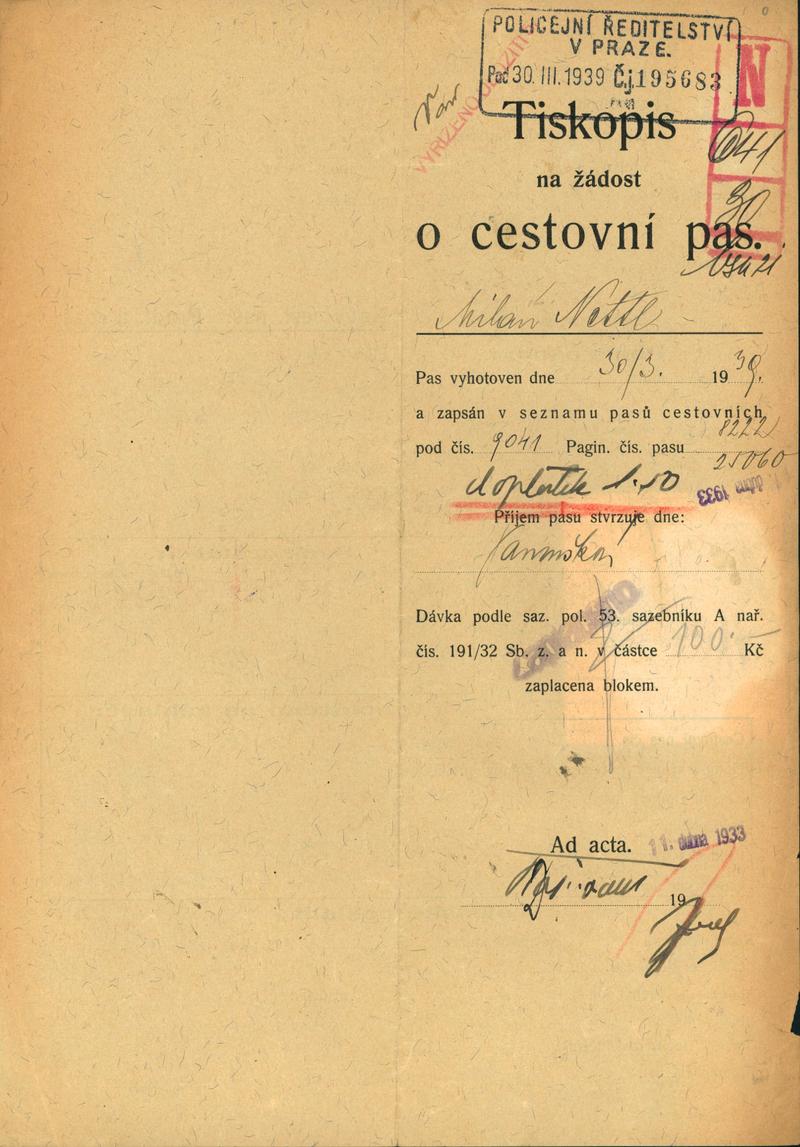 Nettl Milan: Žádost o vydání cestovního pasu