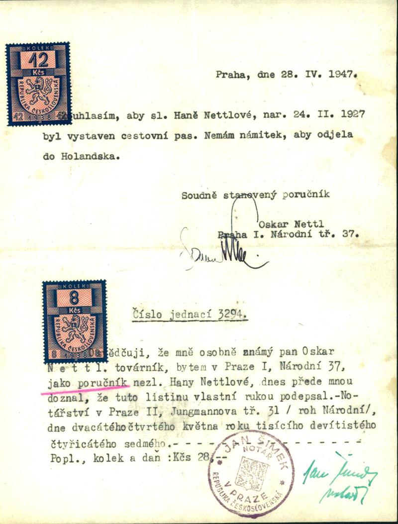Nettlová Hanna: Souhlas s vydáním cestovního pasu