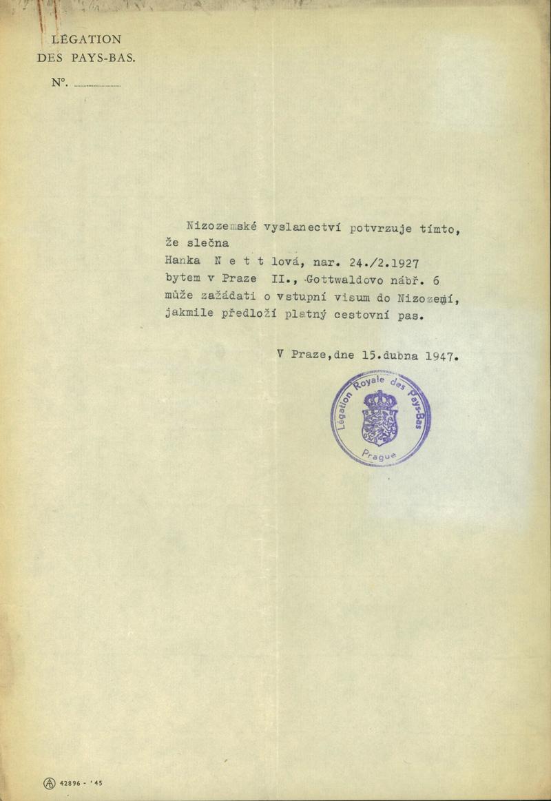 Nettlová Hanna: Vyjádření k žádosti o vízum