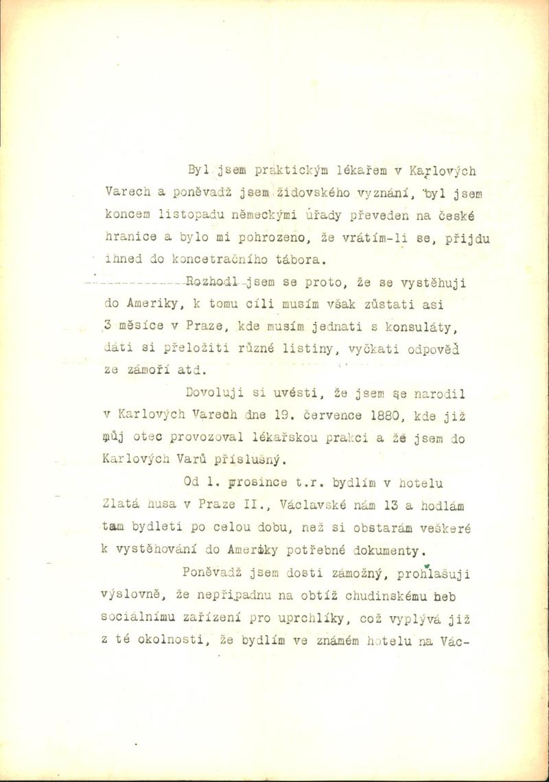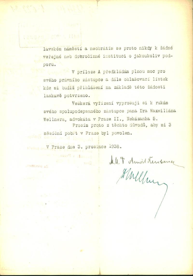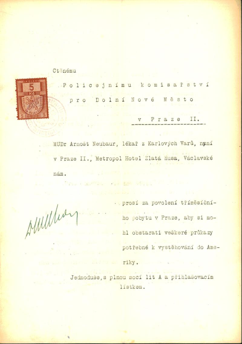 Neubauer Arnošt: Žádost o povolení dočasného pobytu