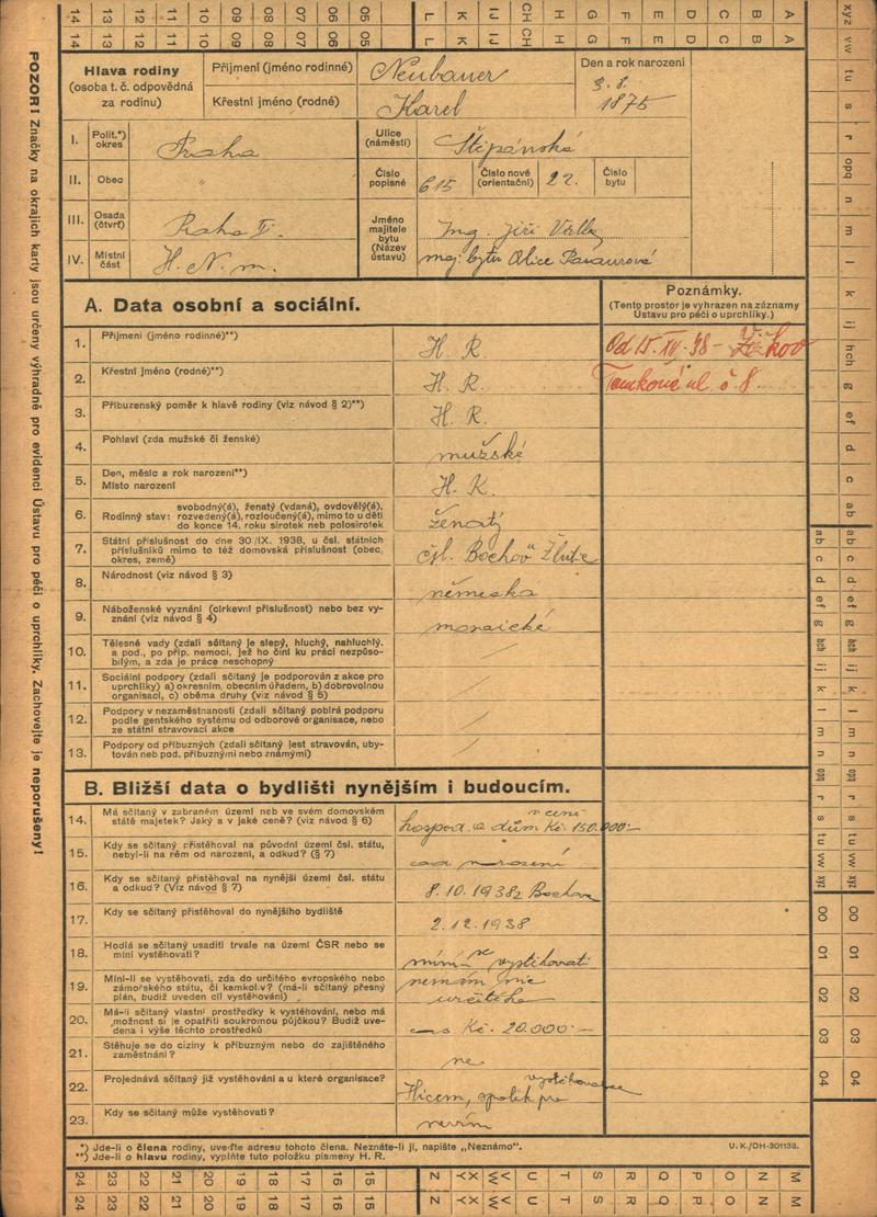 Neubauer Karel: Evidence Ústavu pro péči o uprchlíky