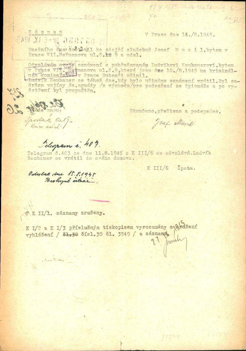 Neubauer Ludwig Anton: Odvolání pátrání po osobě