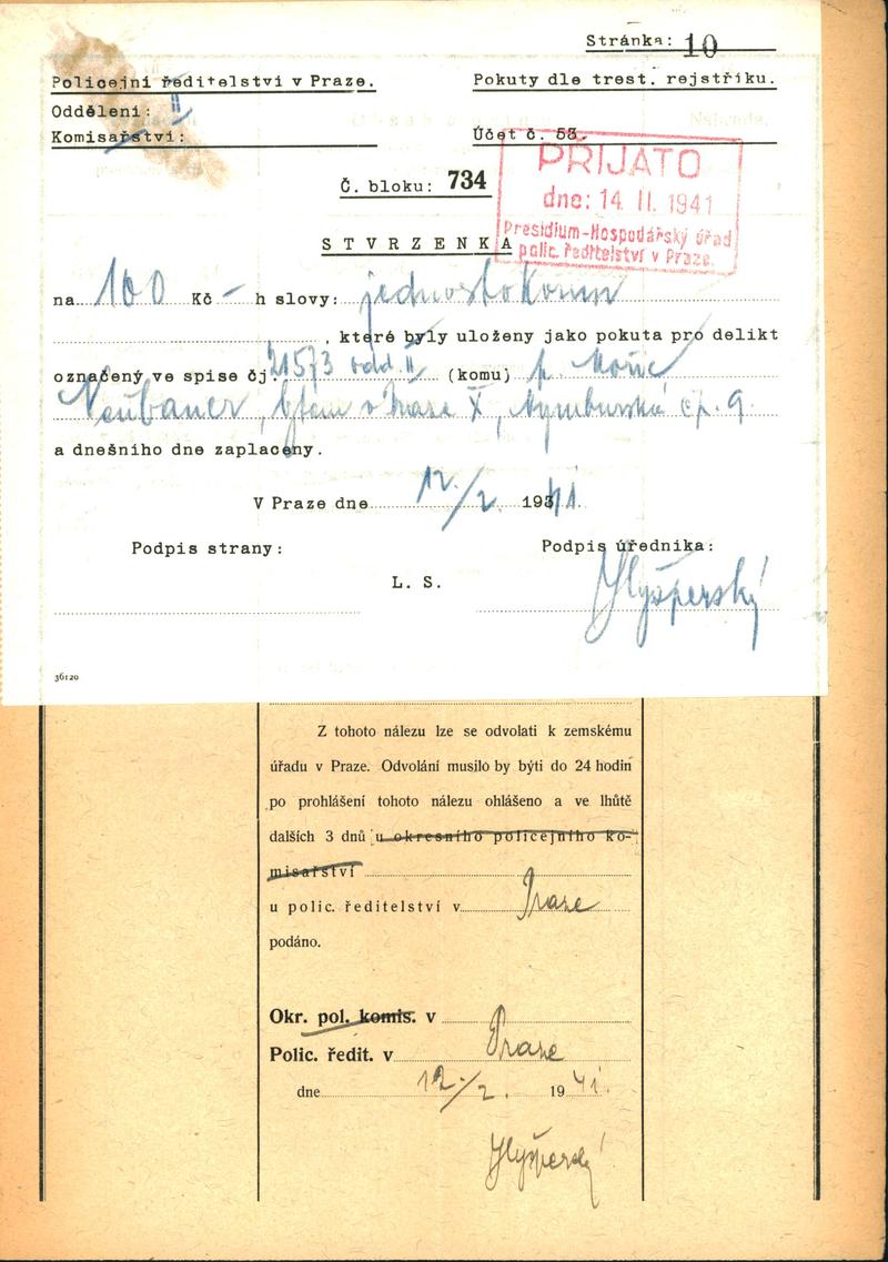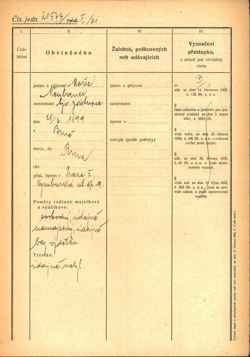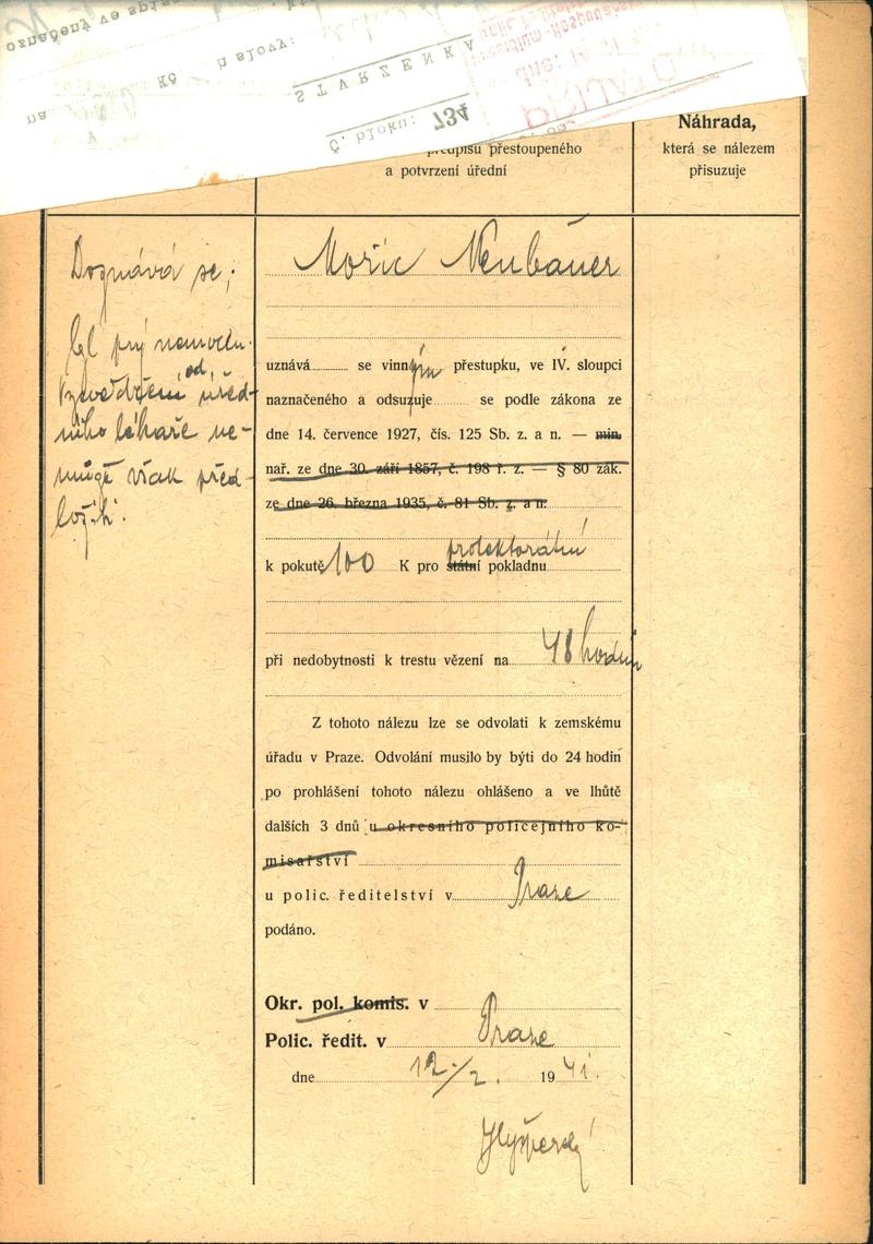 National archives Prague > Police Directorate Prague > 1941-1950 > N > Neubauer Mořic
