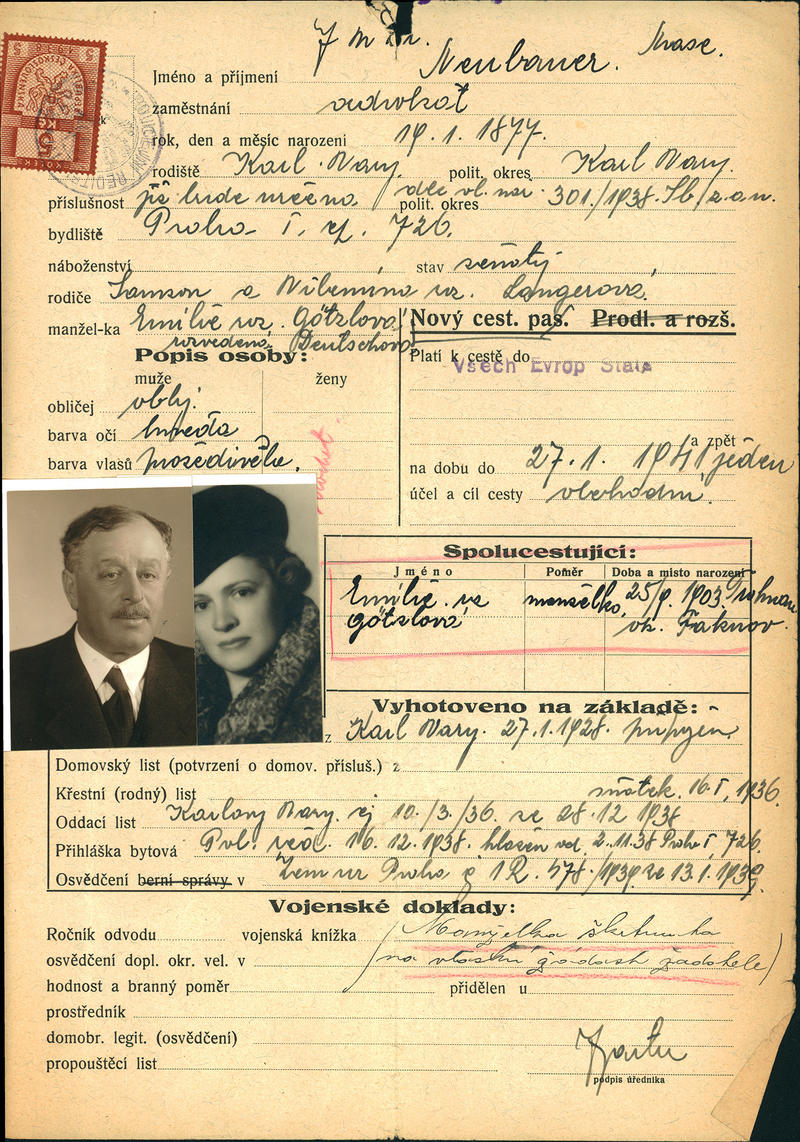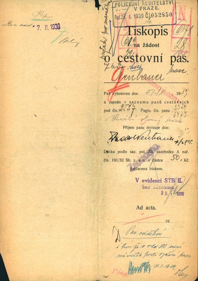 Neubauer Max: Žádost o vydání cestovního pasu