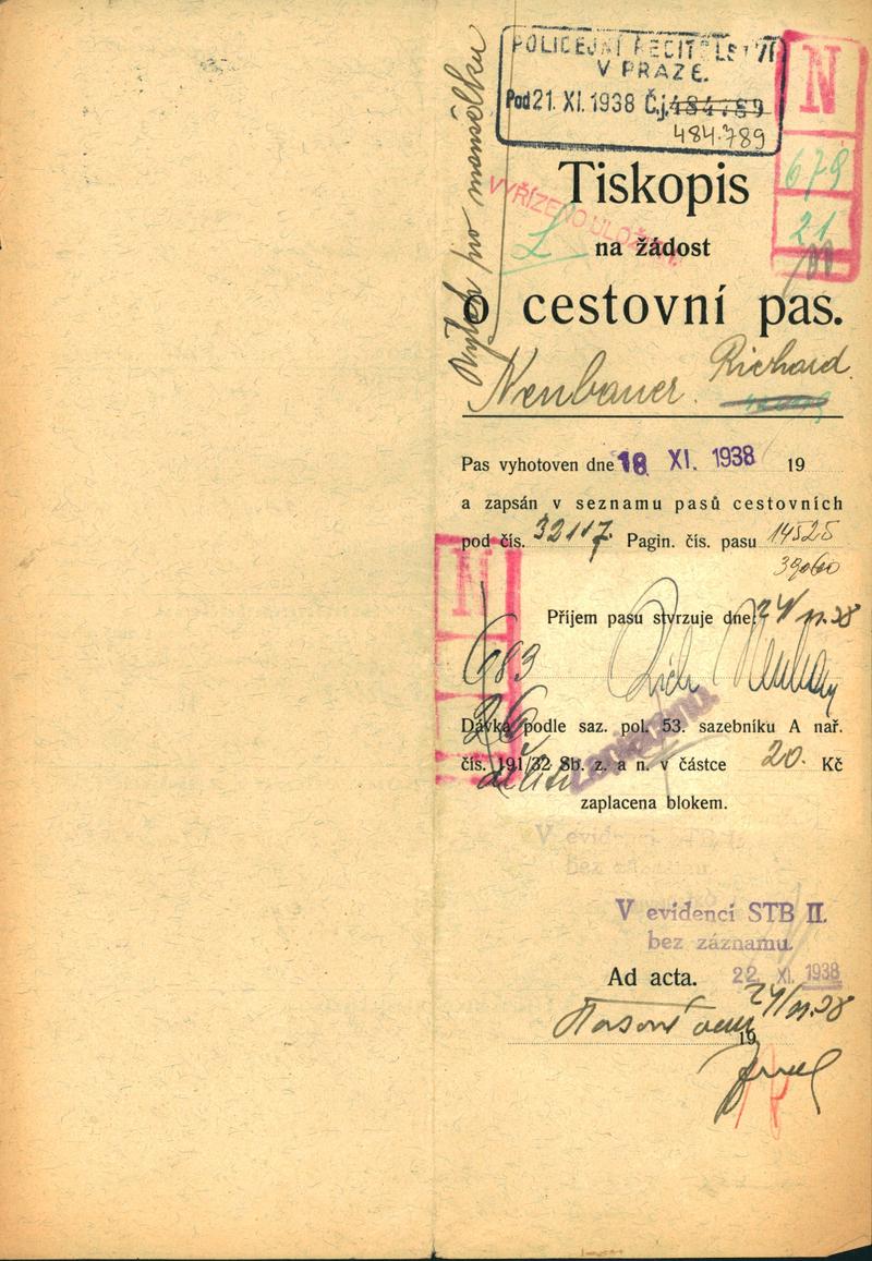 Neubauer Richard: Žádost o vydání cestovního pasu
