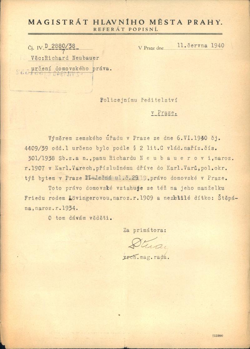 Neubauer Richard: Určení domovského práva