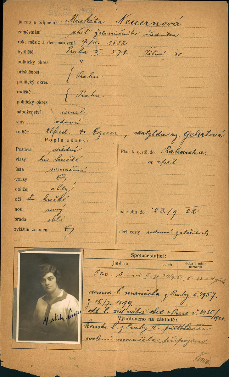 Neuernová Markéta: Žádost o vydání cestovního pasu