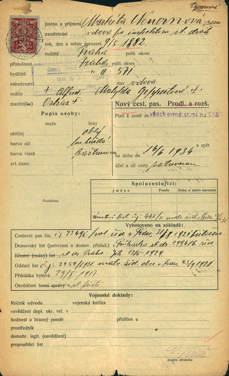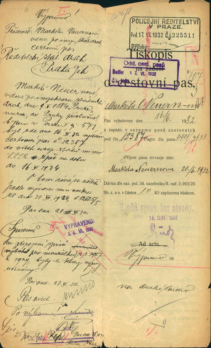 Neuernová Markéta: Žádost o vydání cestovního pasu