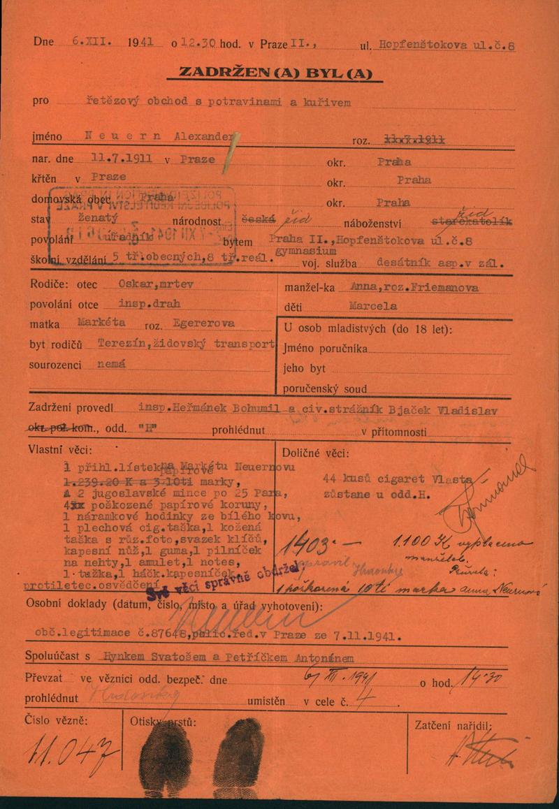 National archives Prague > Police Directorate Prague > 1941-1950 > N > Neuern Alexander