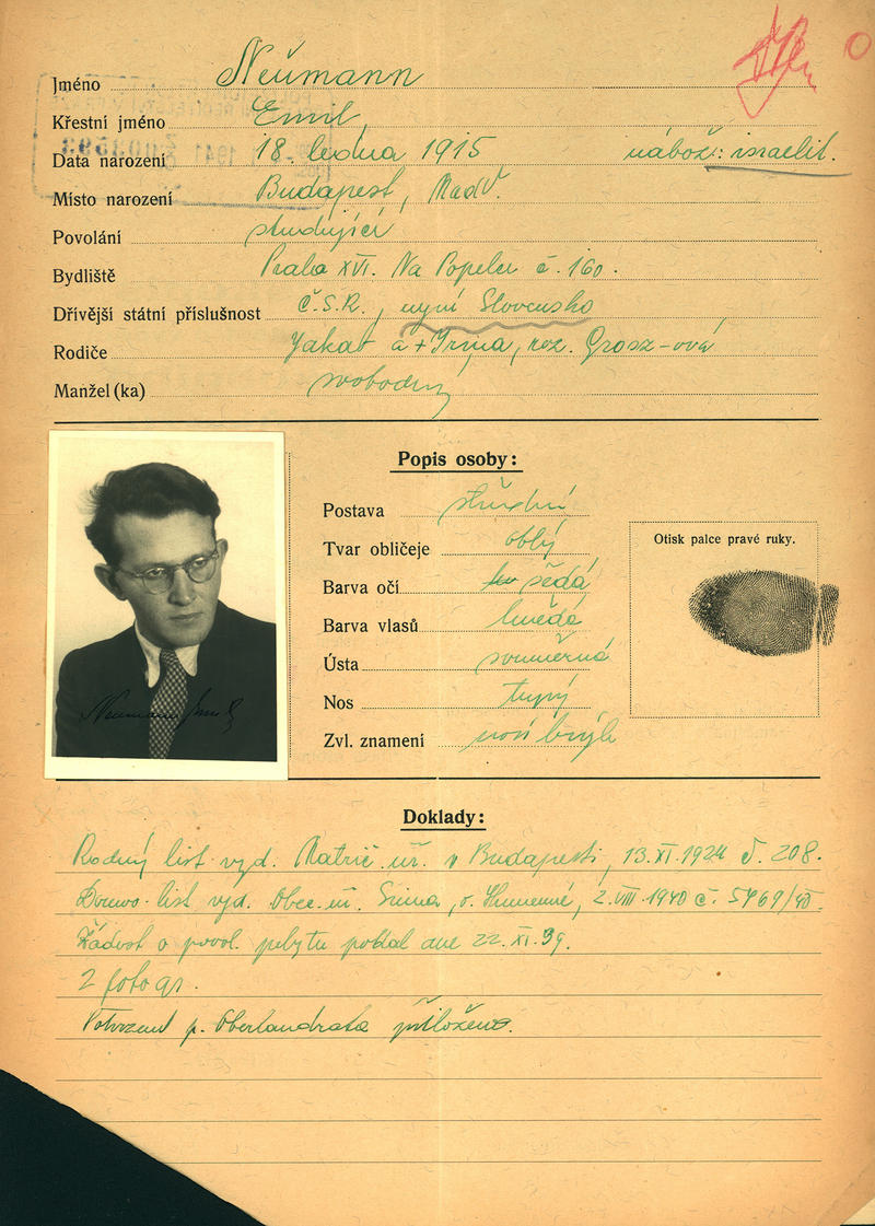 National archives Prague > Police Directorate Prague > 1941-1950 > N > Neumann Emil