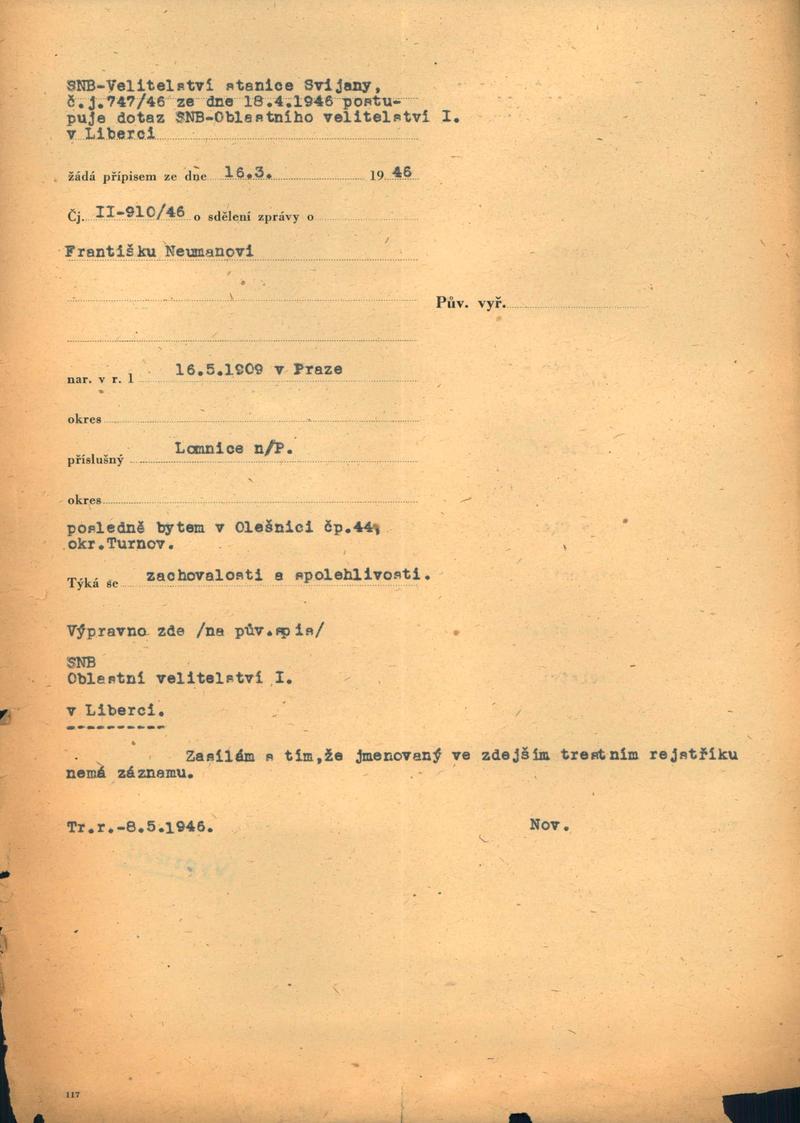 Neumann František: Šetření o zachovalosti