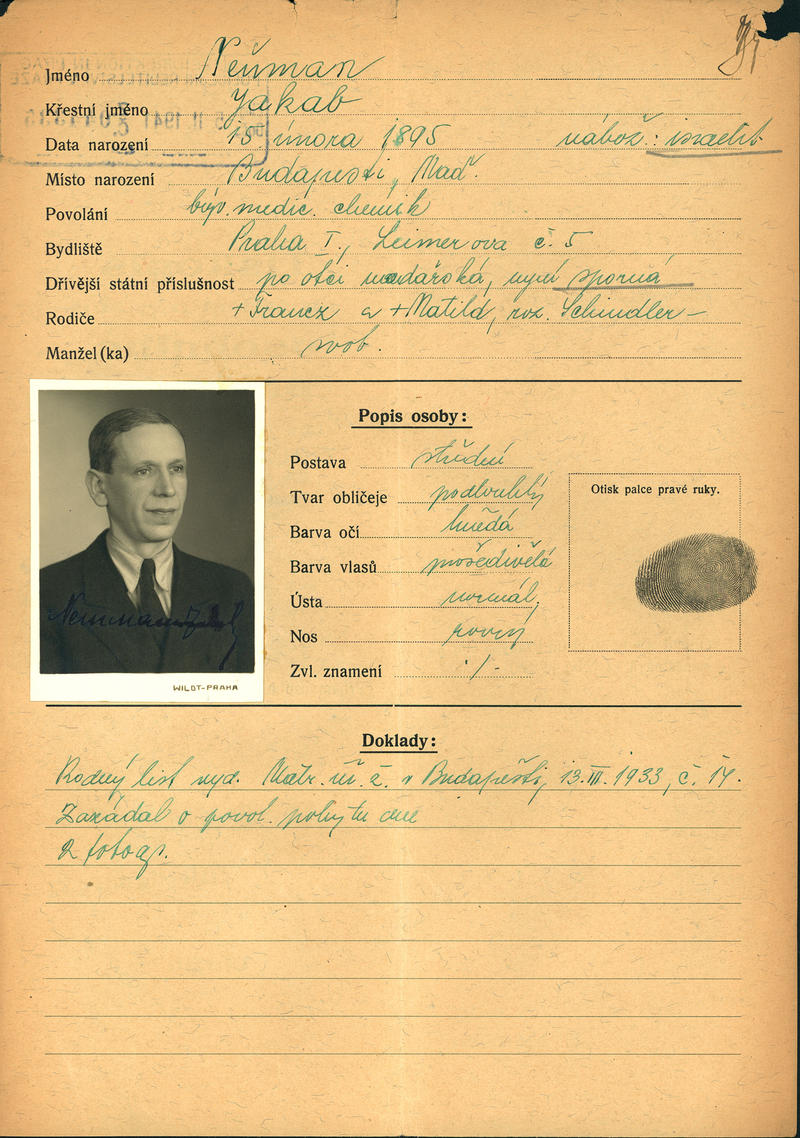 National archives Prague > Police Directorate Prague > 1941-1950 > N > Neumann Jakub