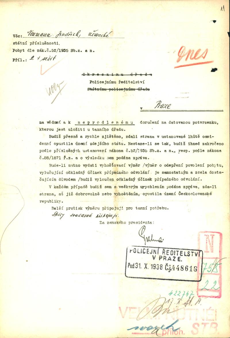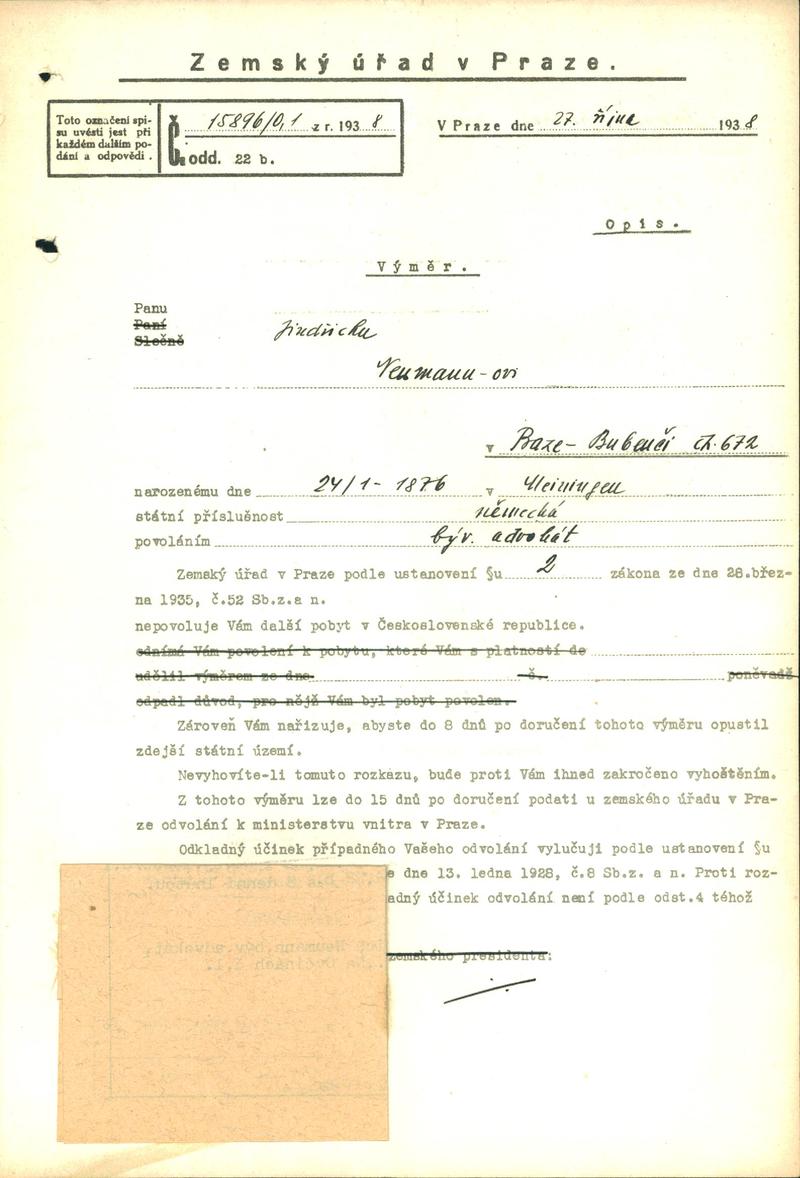 Neumann Heinrich: Vyjádření k žádosti o povolení pobytu