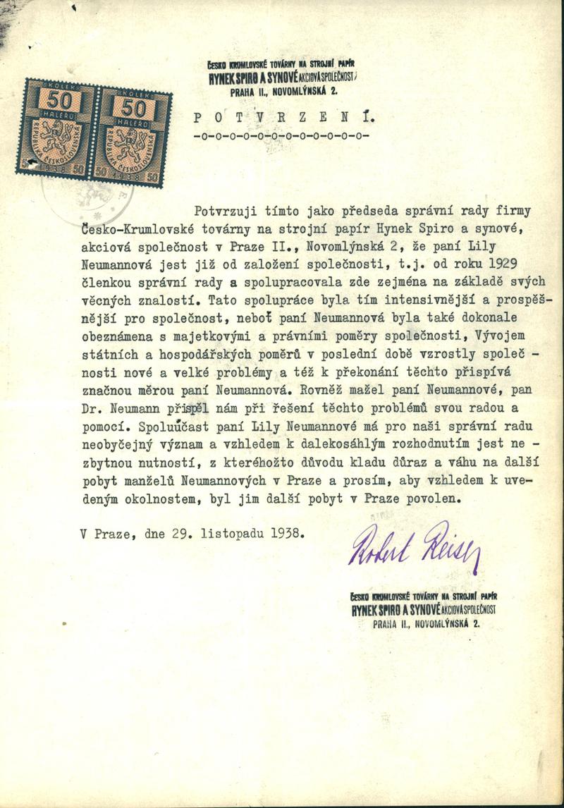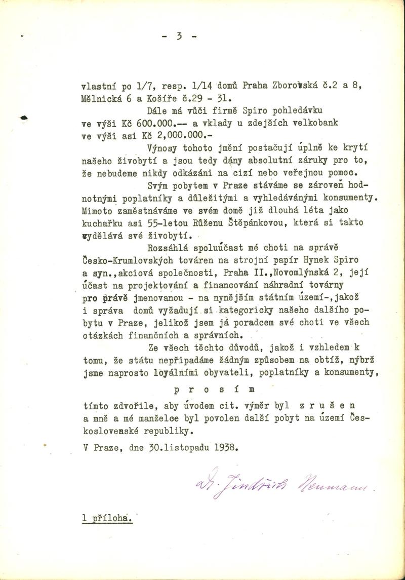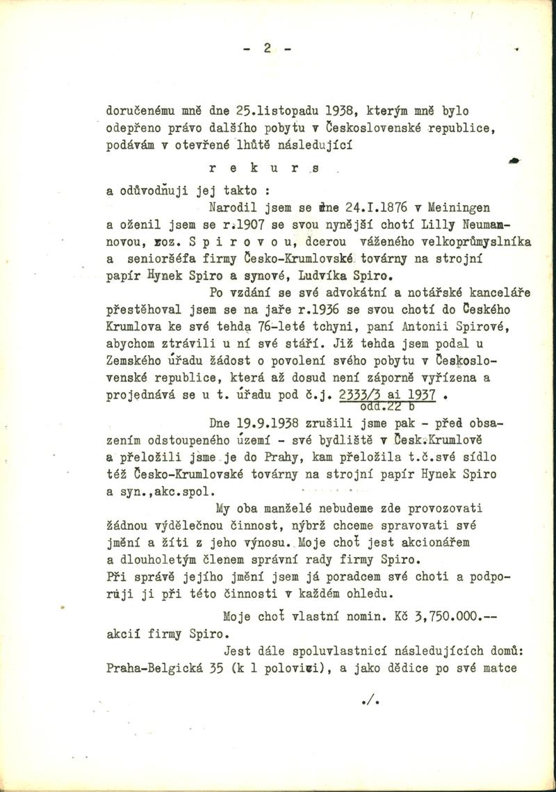 Neumann Heinrich: Žádost o povolení pobytu