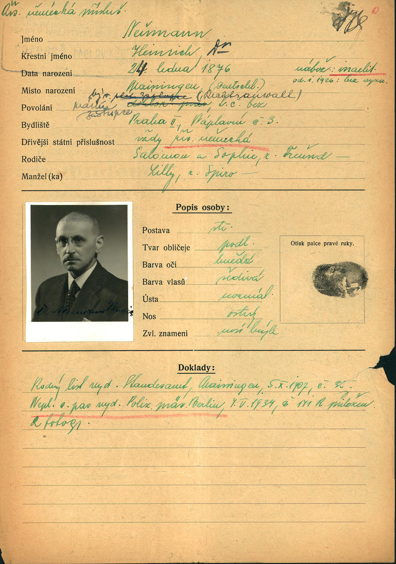 National archives Prague > Police Directorate Prague > 1941-1950 > N > Neumann Heinrich