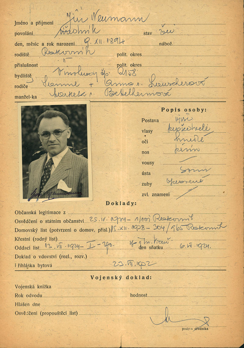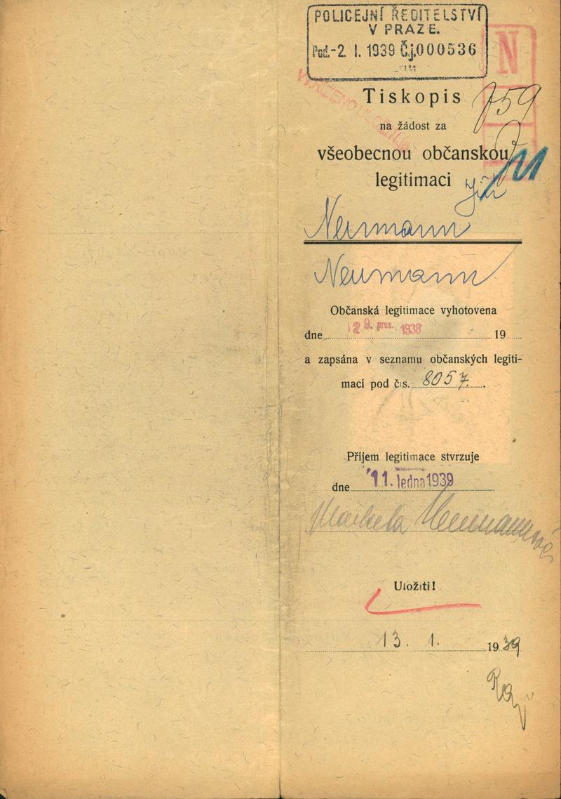 Neumann Jiří: Žádost o vydání občanské legitimace