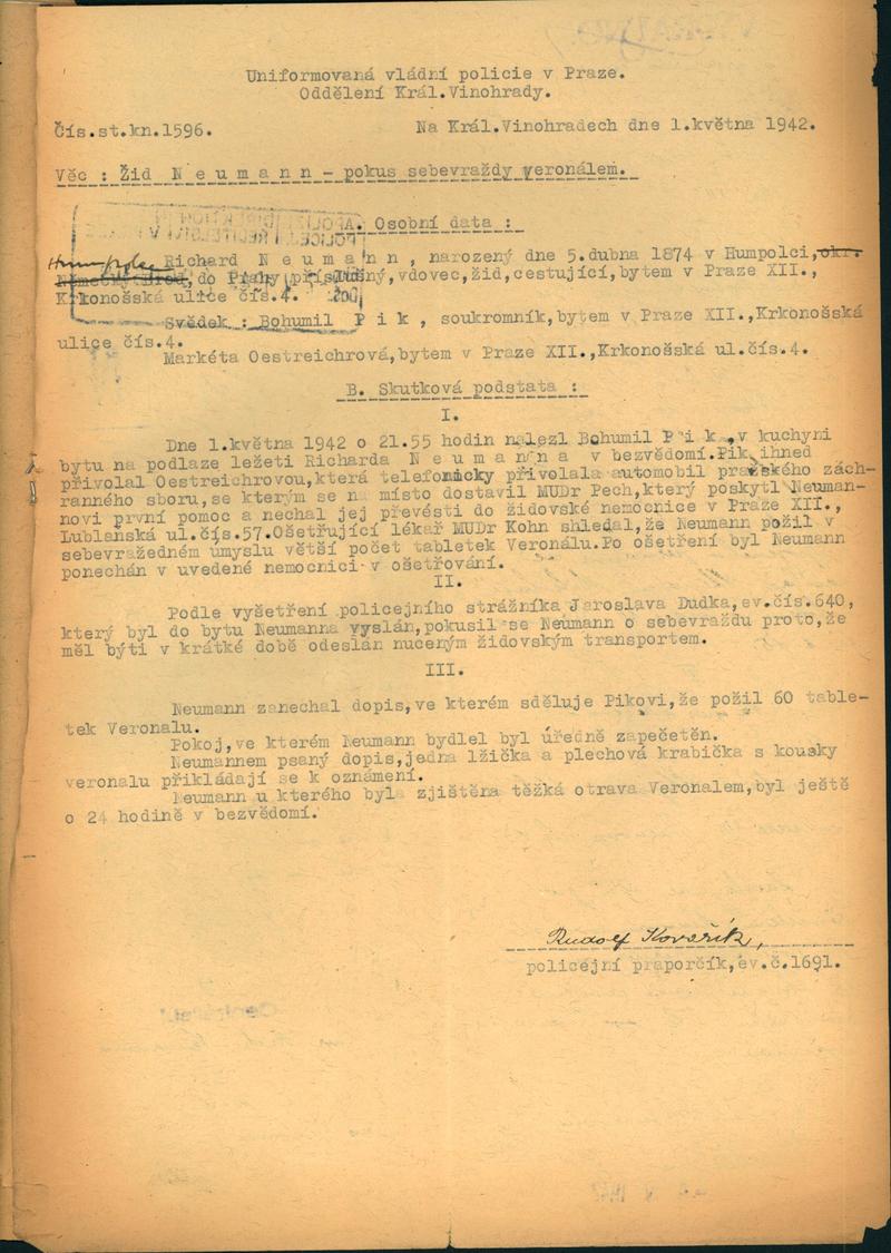 Neumann Richard: Protokol o pokusu o sebevraždu