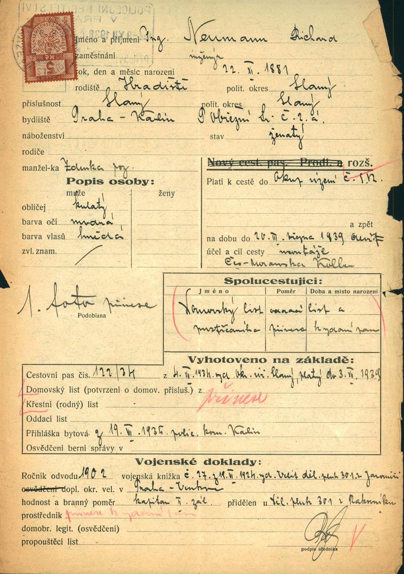 Neumann Richard: Žádost o rozšíření cestovního pasu