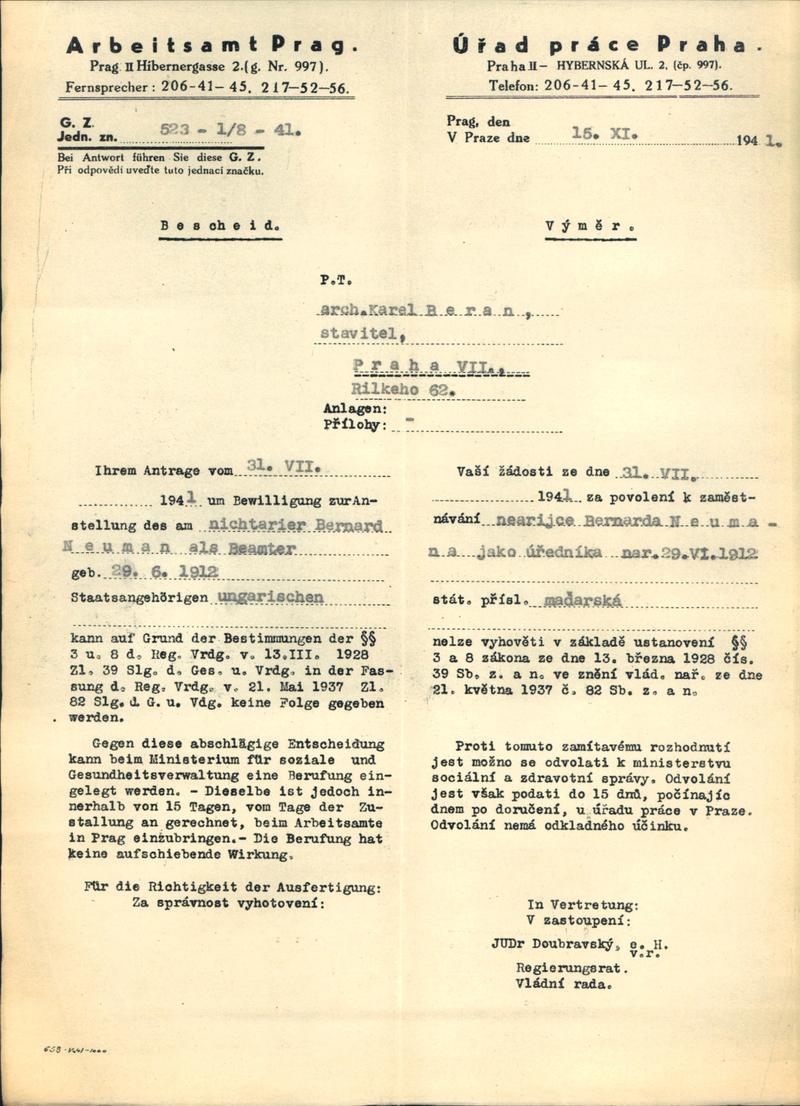 National archives Prague > Police Directorate Prague > 1941-1950 > N > Neumann Bernhard