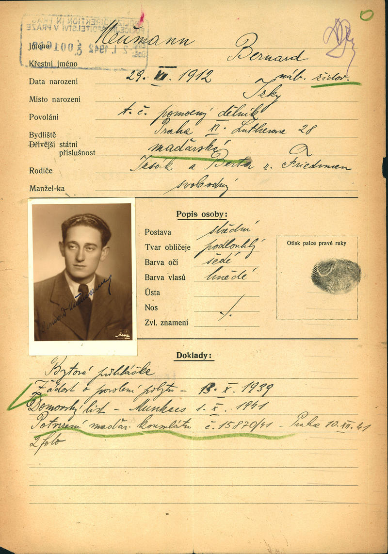 National archives Prague > Police Directorate Prague > 1941-1950 > N > Neumann Bernhard