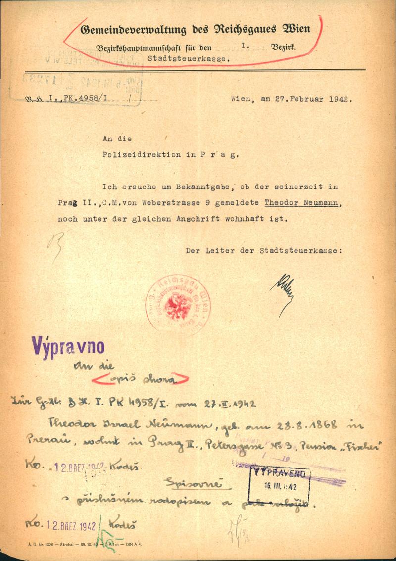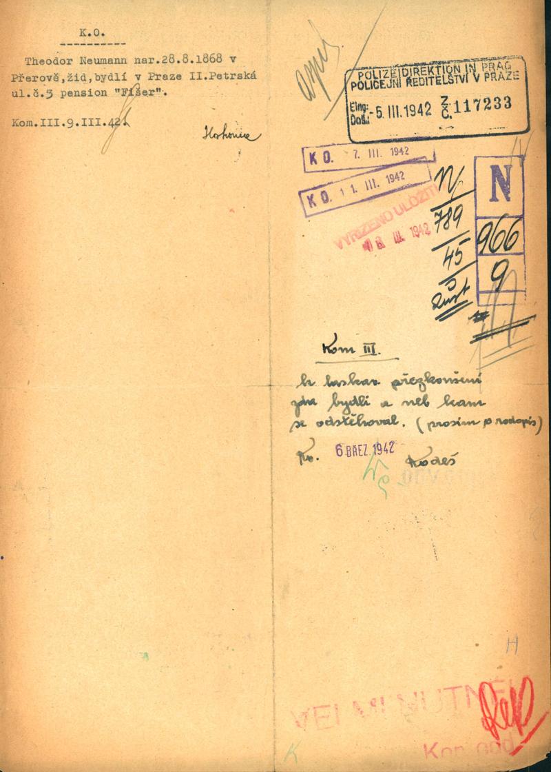 National archives Prague > Police Directorate Prague > 1941-1950 > N > Neumann Theodor