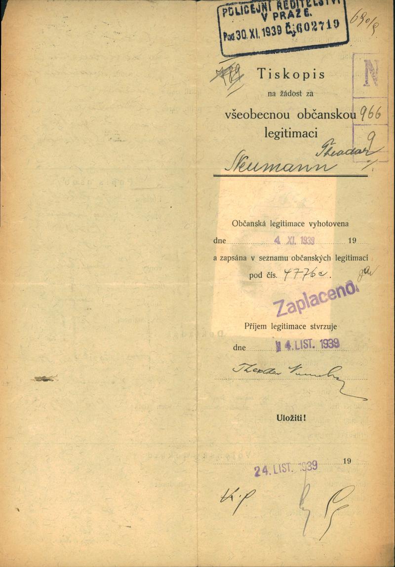 Neumann Theodor: Žádost o vydání občanské legitimace