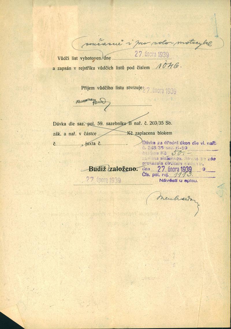 Neumann Hanuš Stanislav: Připuštění k řidičské zkoušce