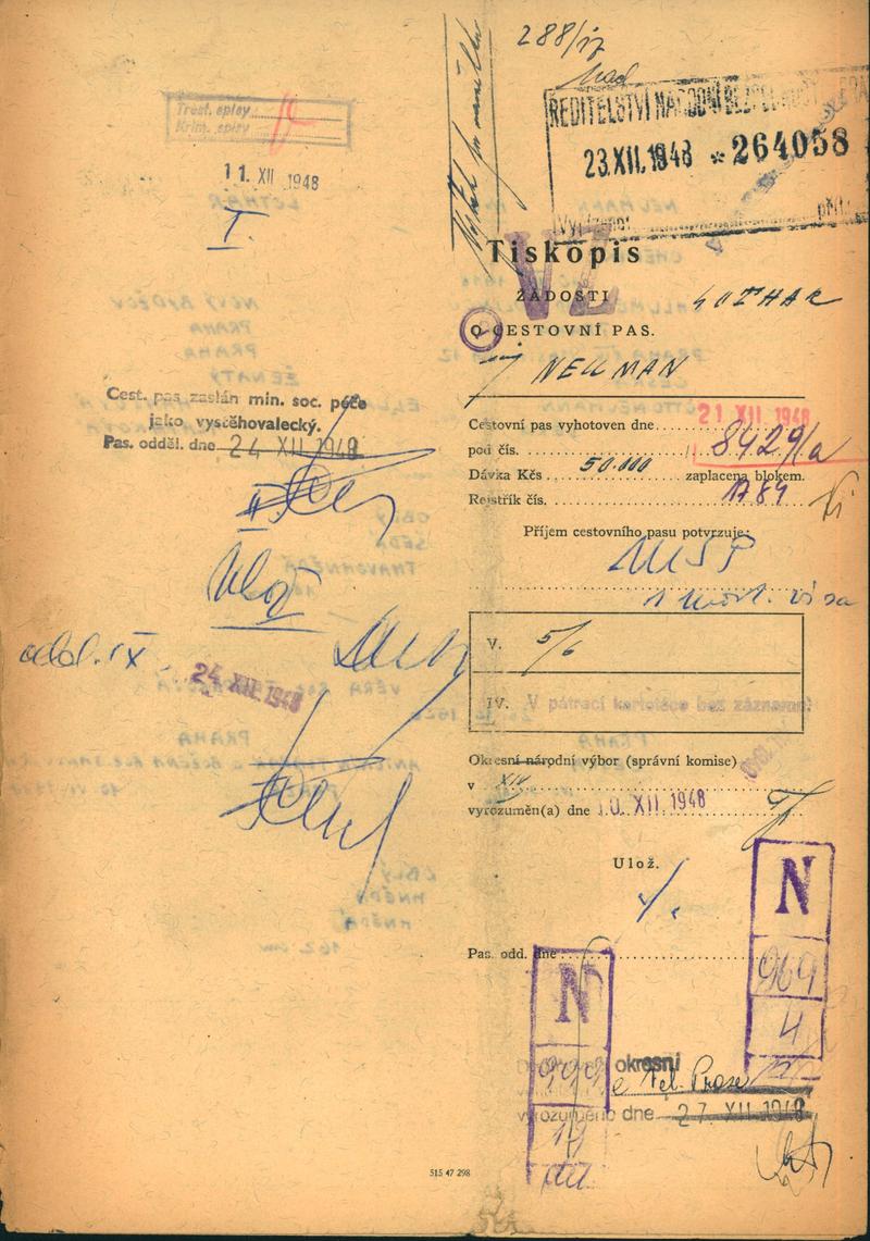 Neumann Lothar: Žádost o vydání cestovního pasu