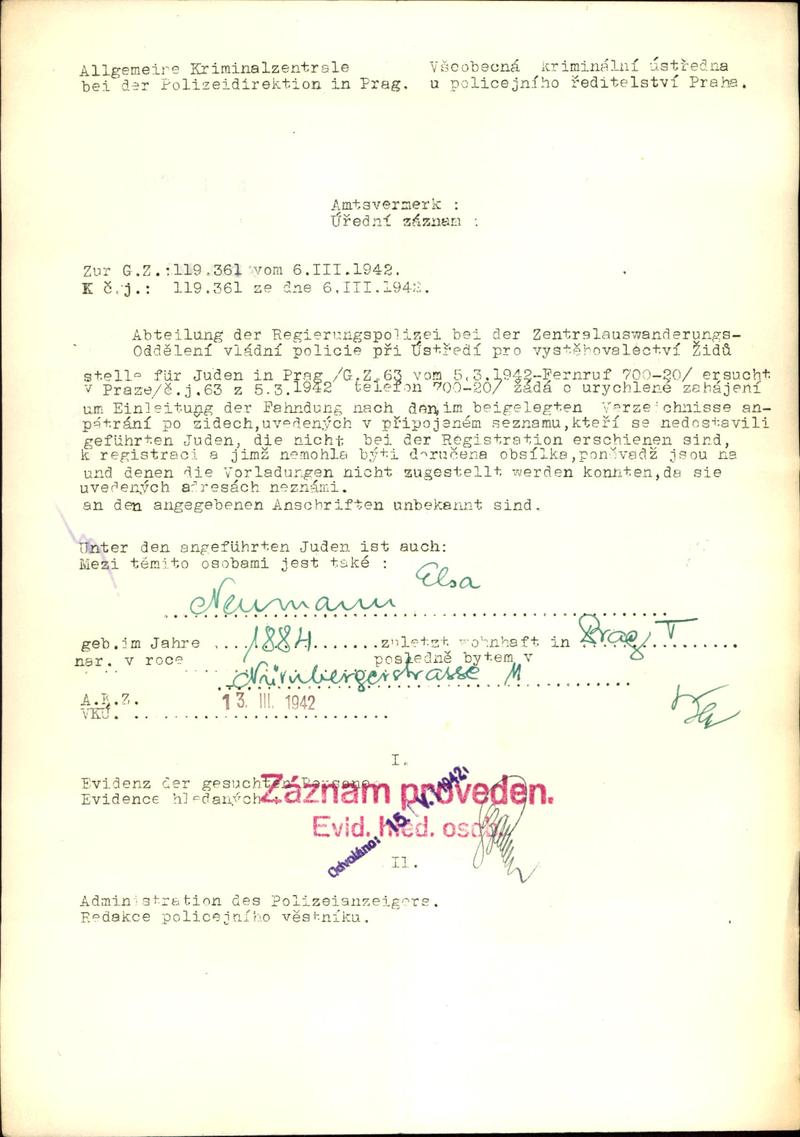 National archives Prague > Police Directorate Prague > 1941-1950 > N > Neumannová Elsa