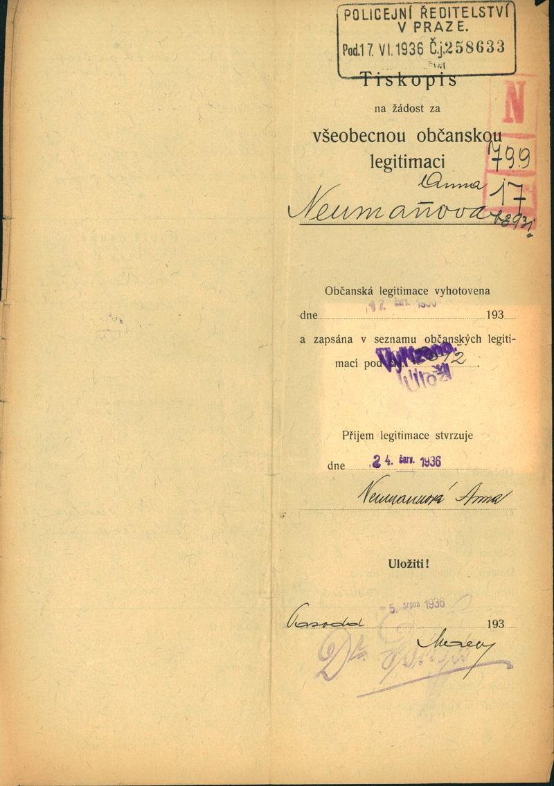 Neumannová Anna: Žádost o vydání občanské legitimace