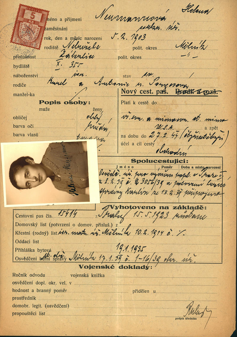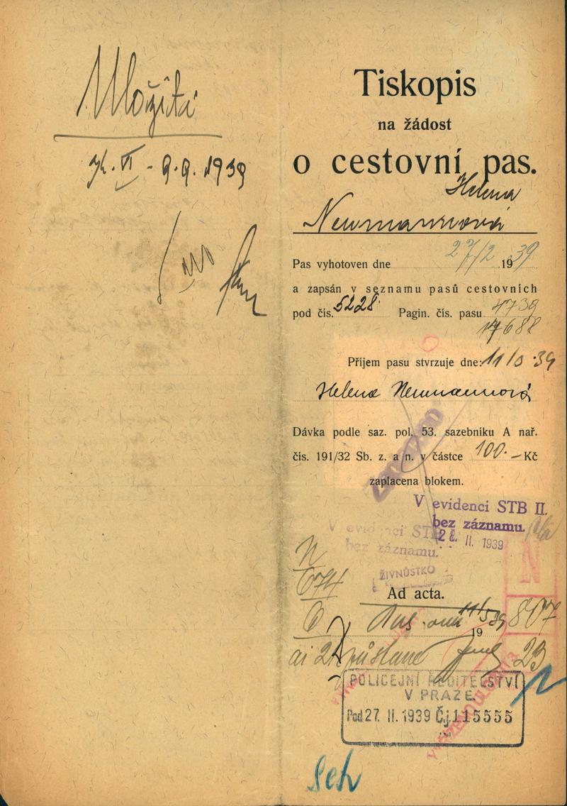 Neumannová Helena: Žádost o vydání cestovního pasu