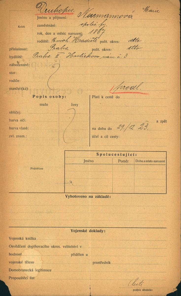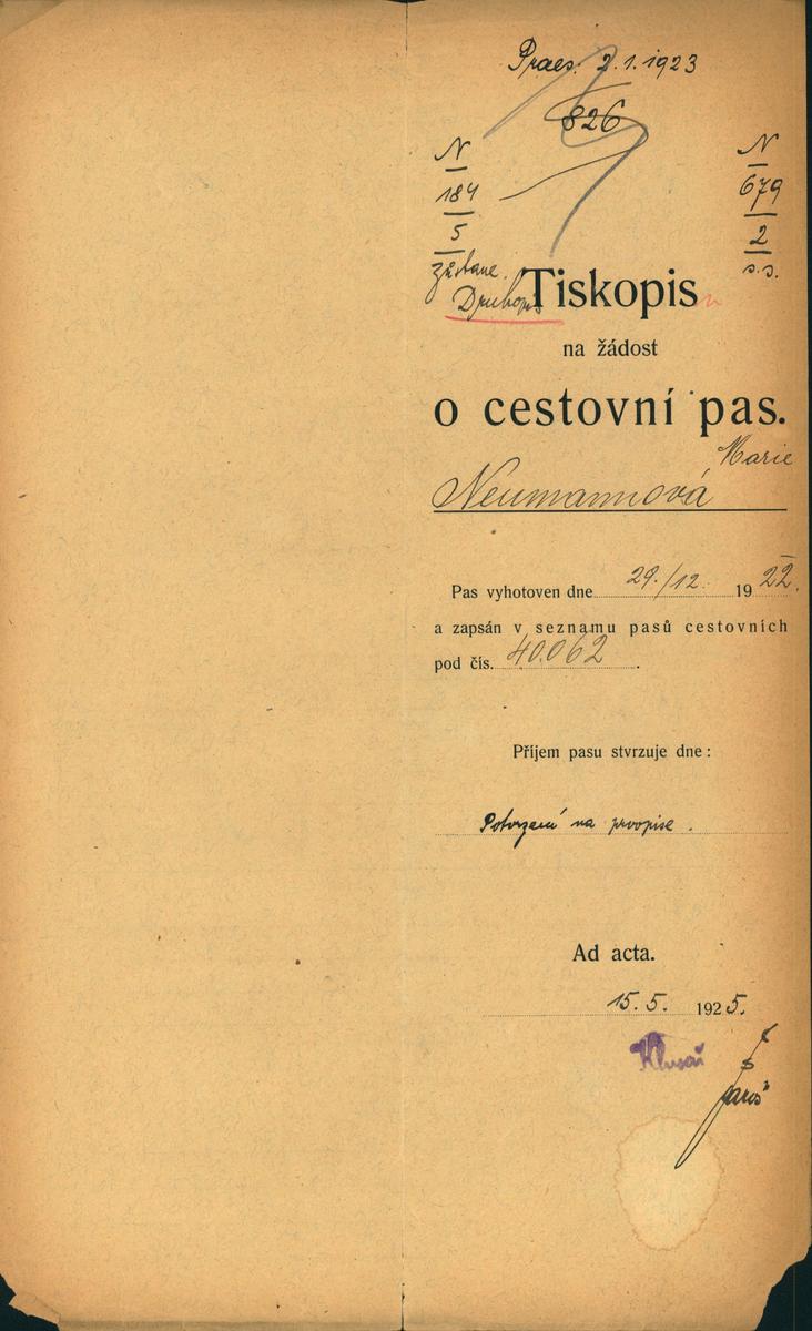 Neumannová Marie: Žádost o prodloužení cestovního pasu