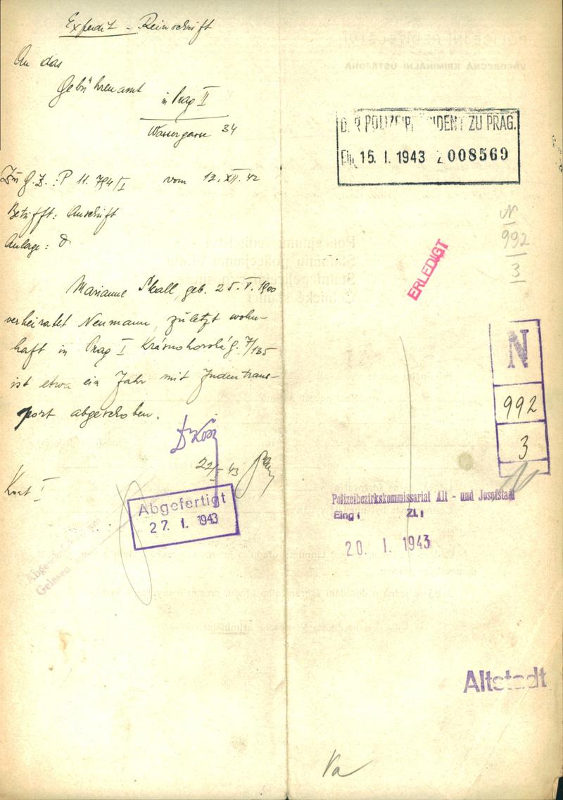 Neumannová Marianna: Šetření o pobytu odtransportovaných Židů