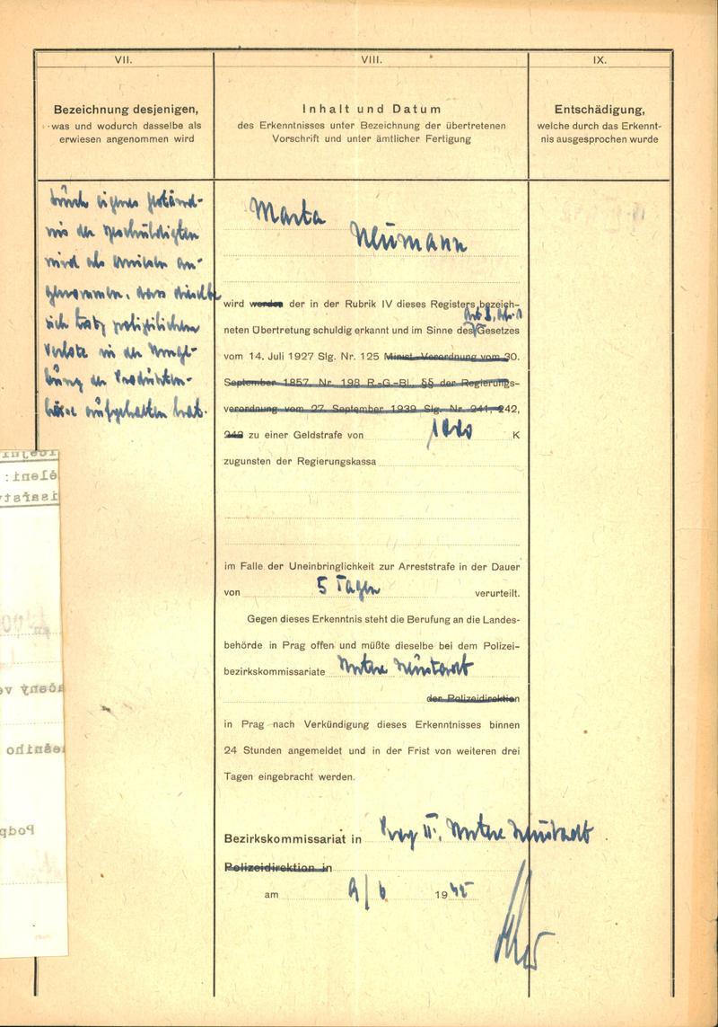 National archives Prague > Police Directorate Prague > 1941-1950 > N > Neumannová Marta