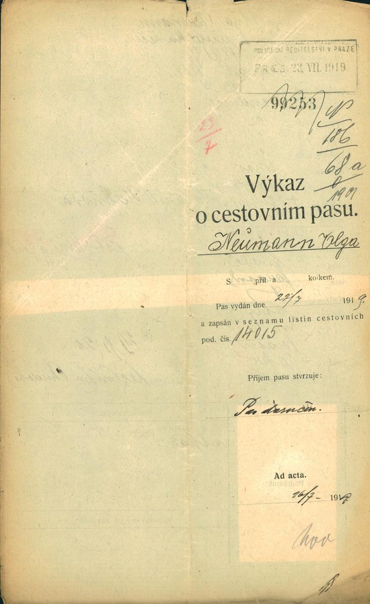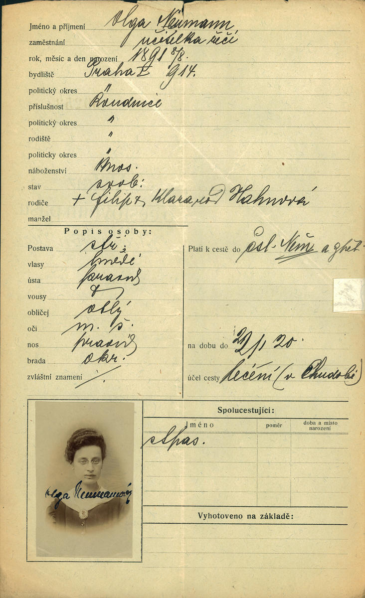 Neumannová Olga: Žádost o vydání cestovního pasu