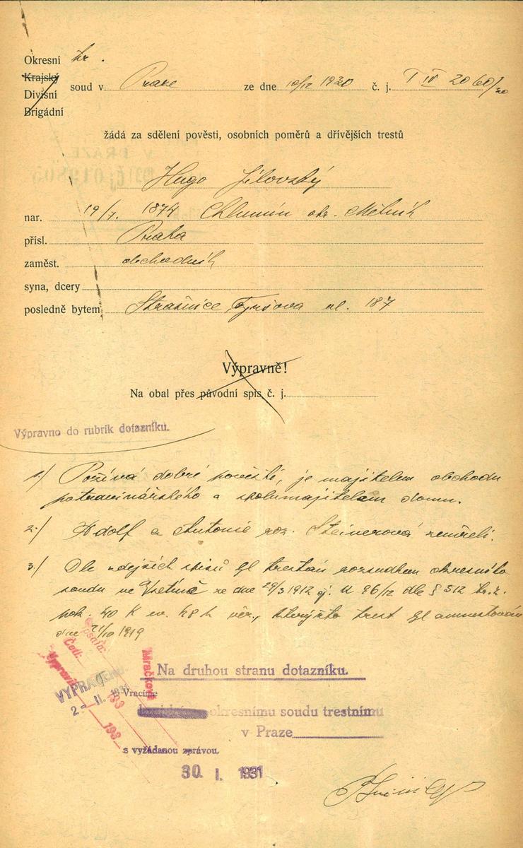 National archives Prague > Police Directorate Prague > 1941-1950 > J > Jílovský Hugo