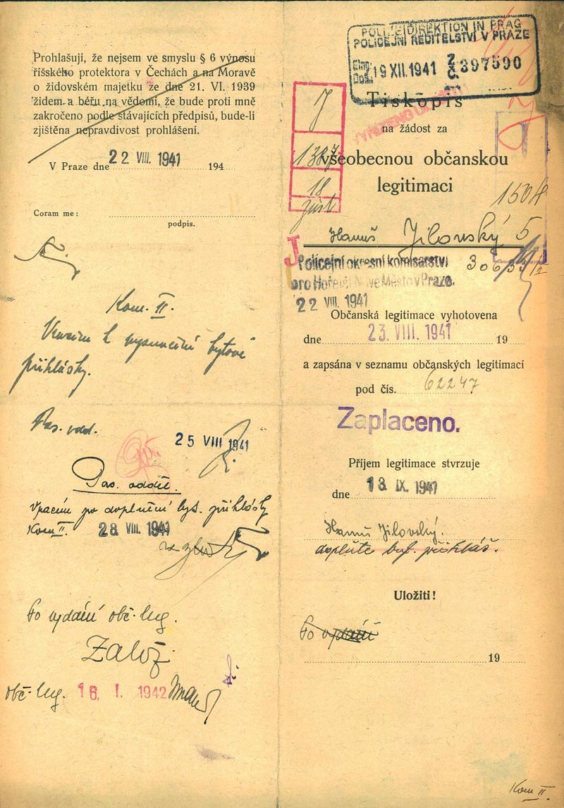 Jilovský Hanuš: Žádost o vydání občanské legitimace