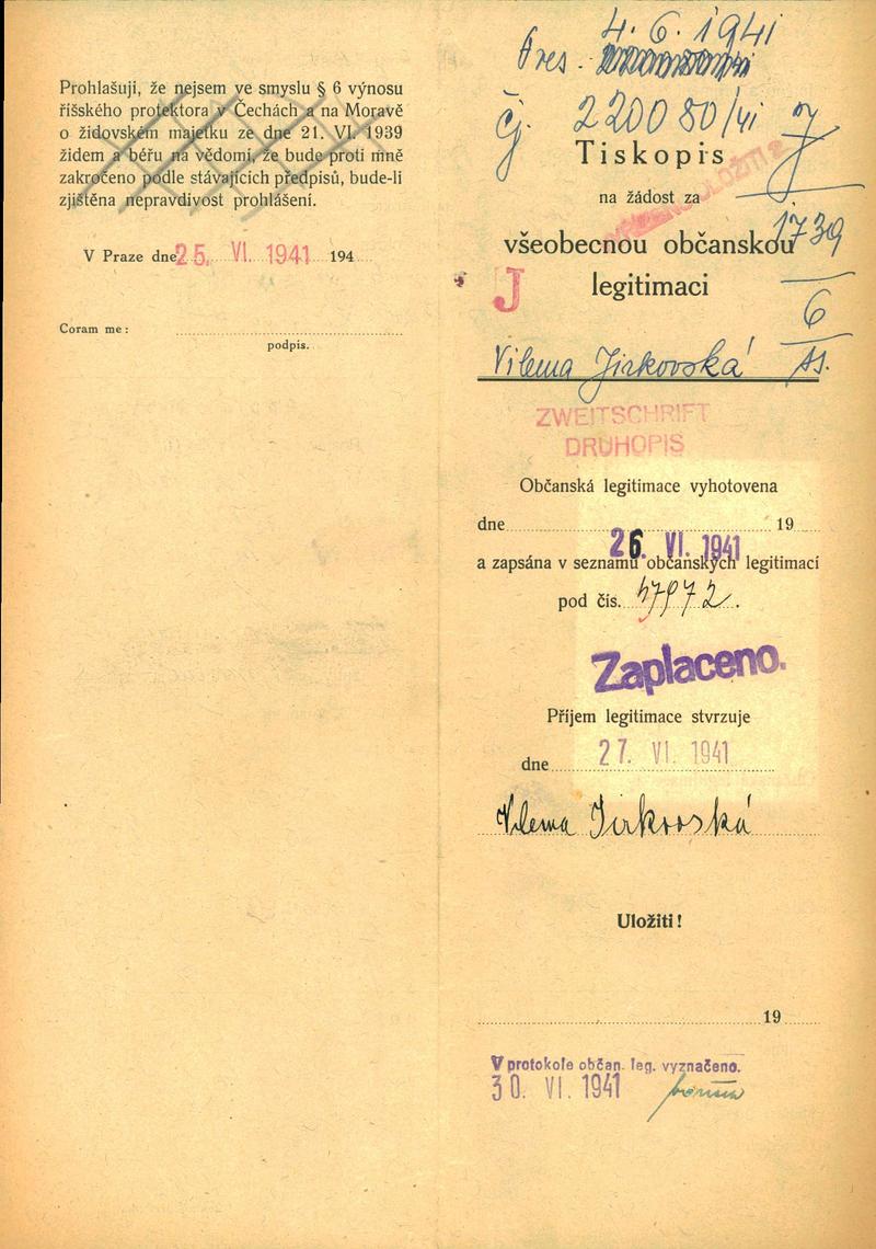 Jirkovská Viléma: Žádost o vydání občanské legitimace