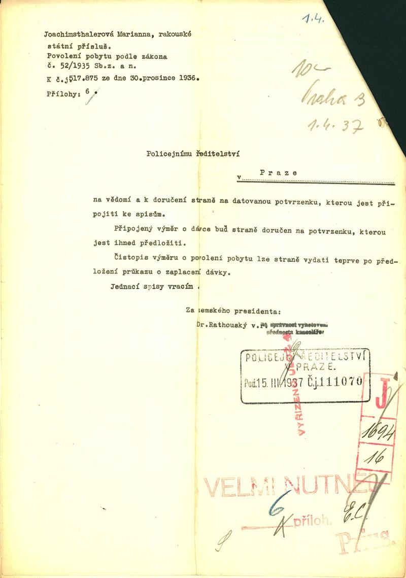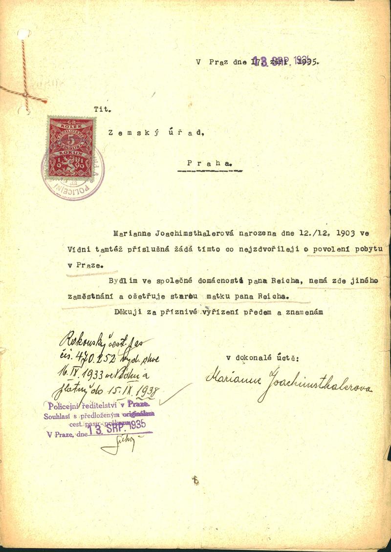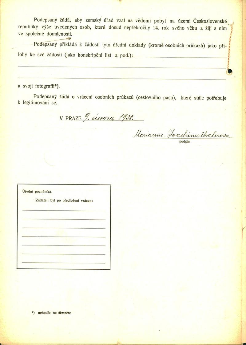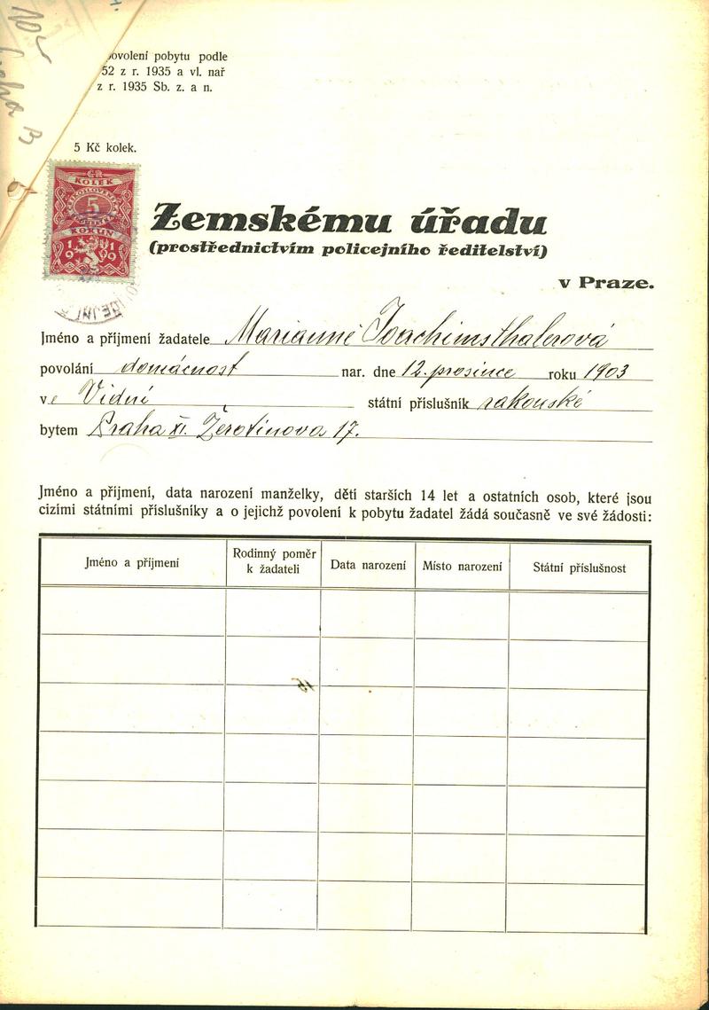 Joachimsthalerová Marianna: Žádost o povolení pobytu