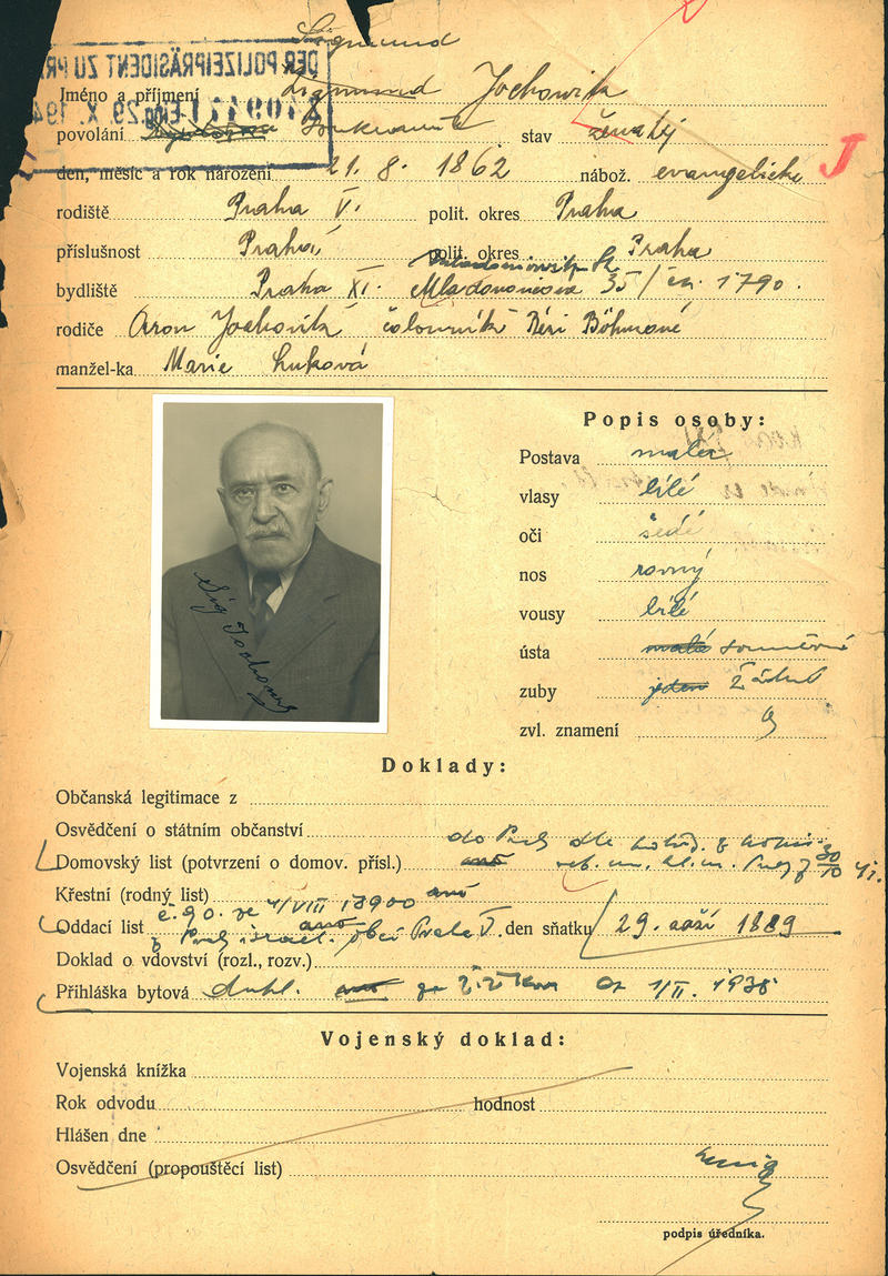 National archives Prague > Police Directorate Prague > 1941-1950 > J > Jochowitz Zikmund