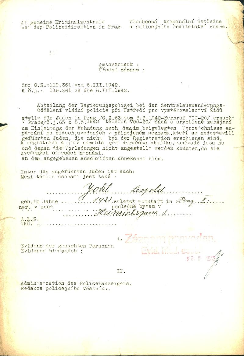 Jokl Leopold: Pátrání po neregistrovaných Židech