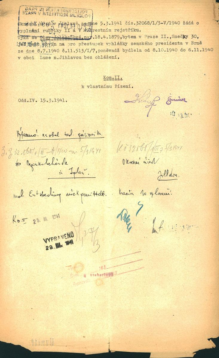 National archives Prague > Police Directorate Prague > 1941-1950 > J > Joleschová Olga