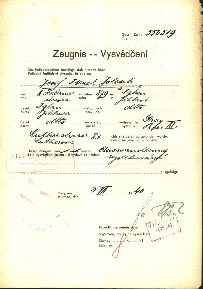 National archives Prague > Police Directorate Prague > 1941-1950 > J > Jolesch Josef