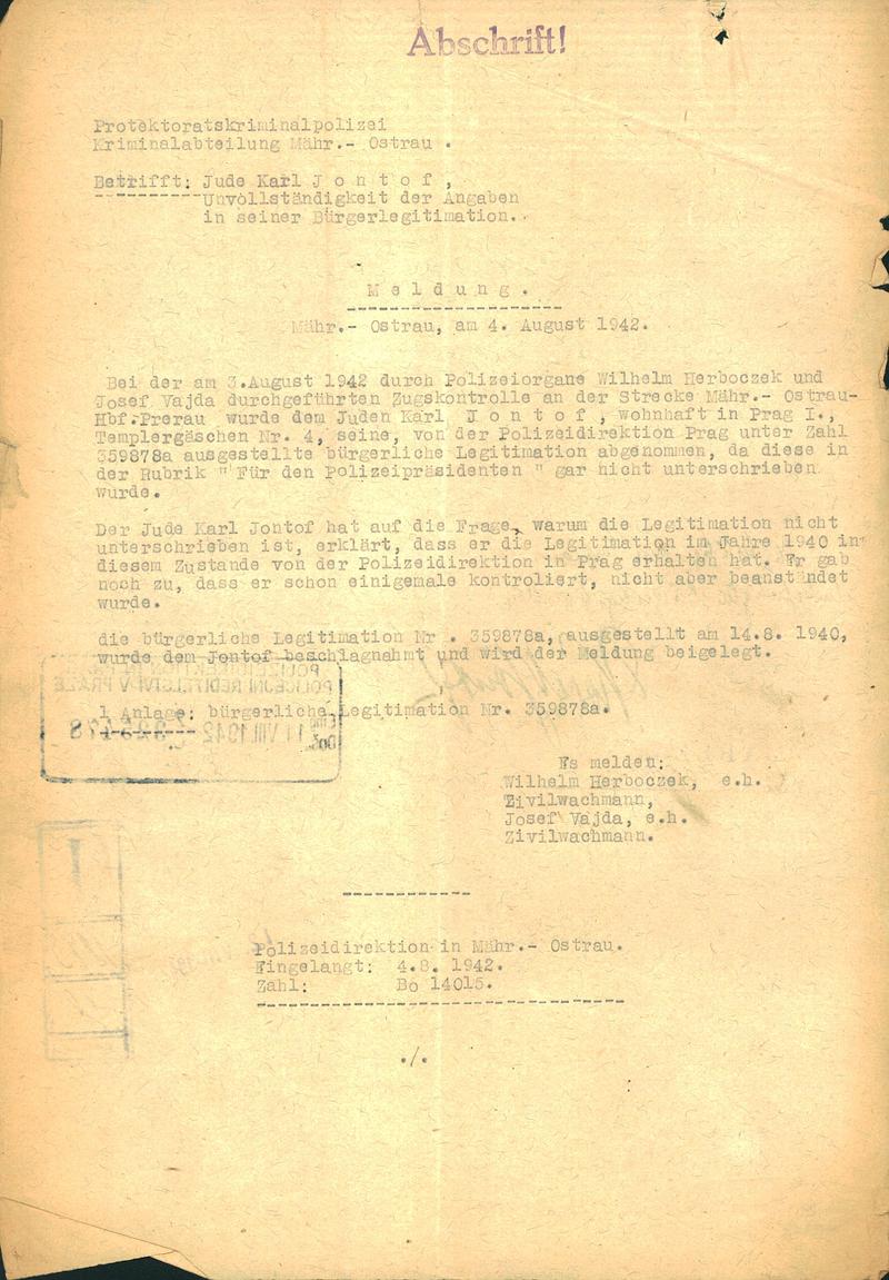 National archives Prague > Police Directorate Prague > 1941-1950 > J > Jontof Karel