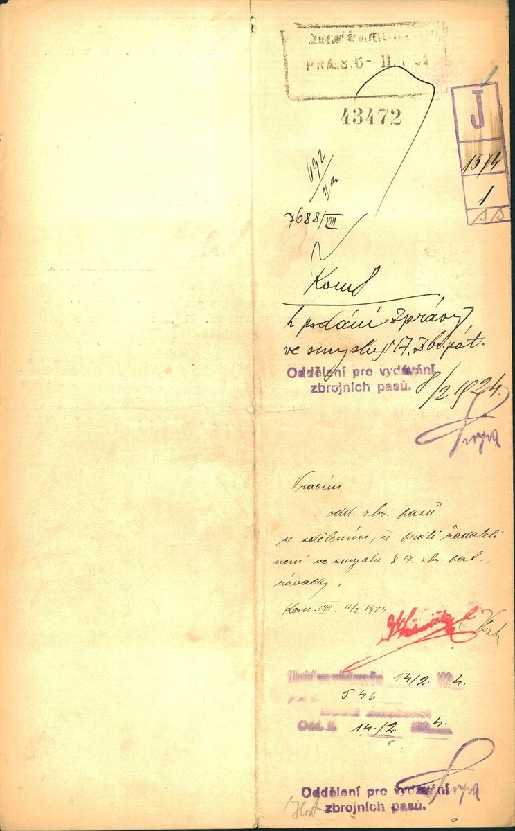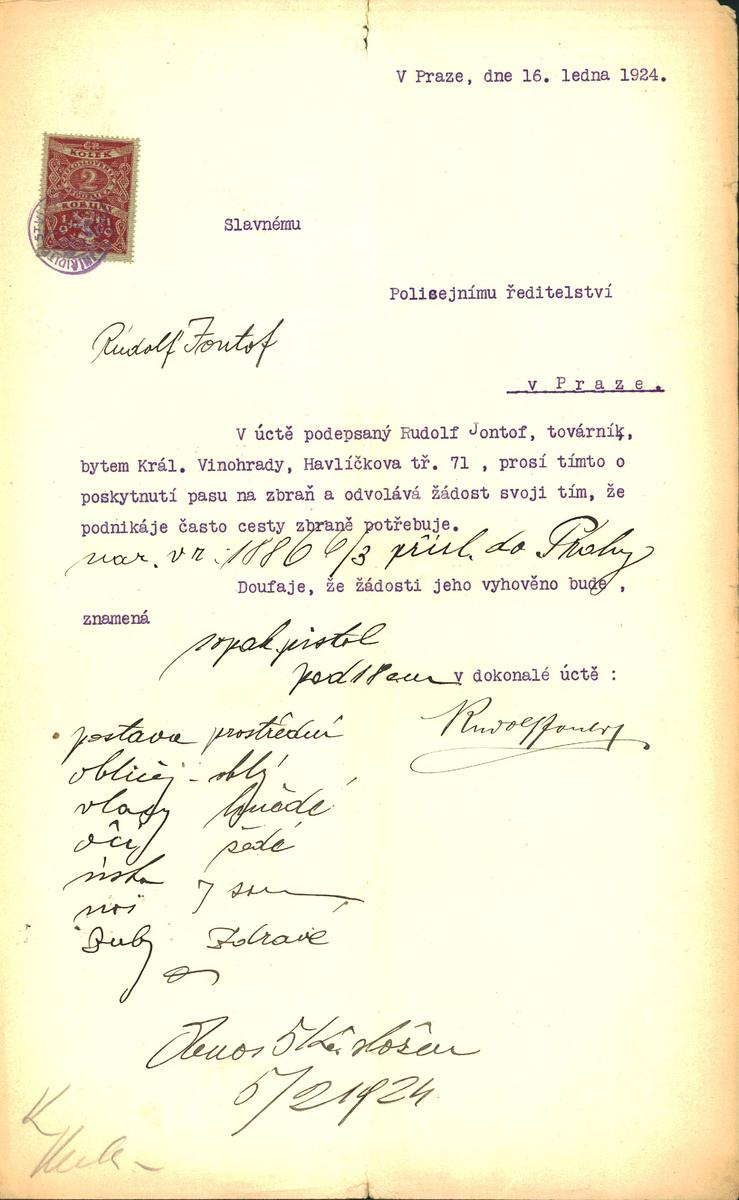 Jontof Rudolf: Žádost o vydání zbrojního pasu
