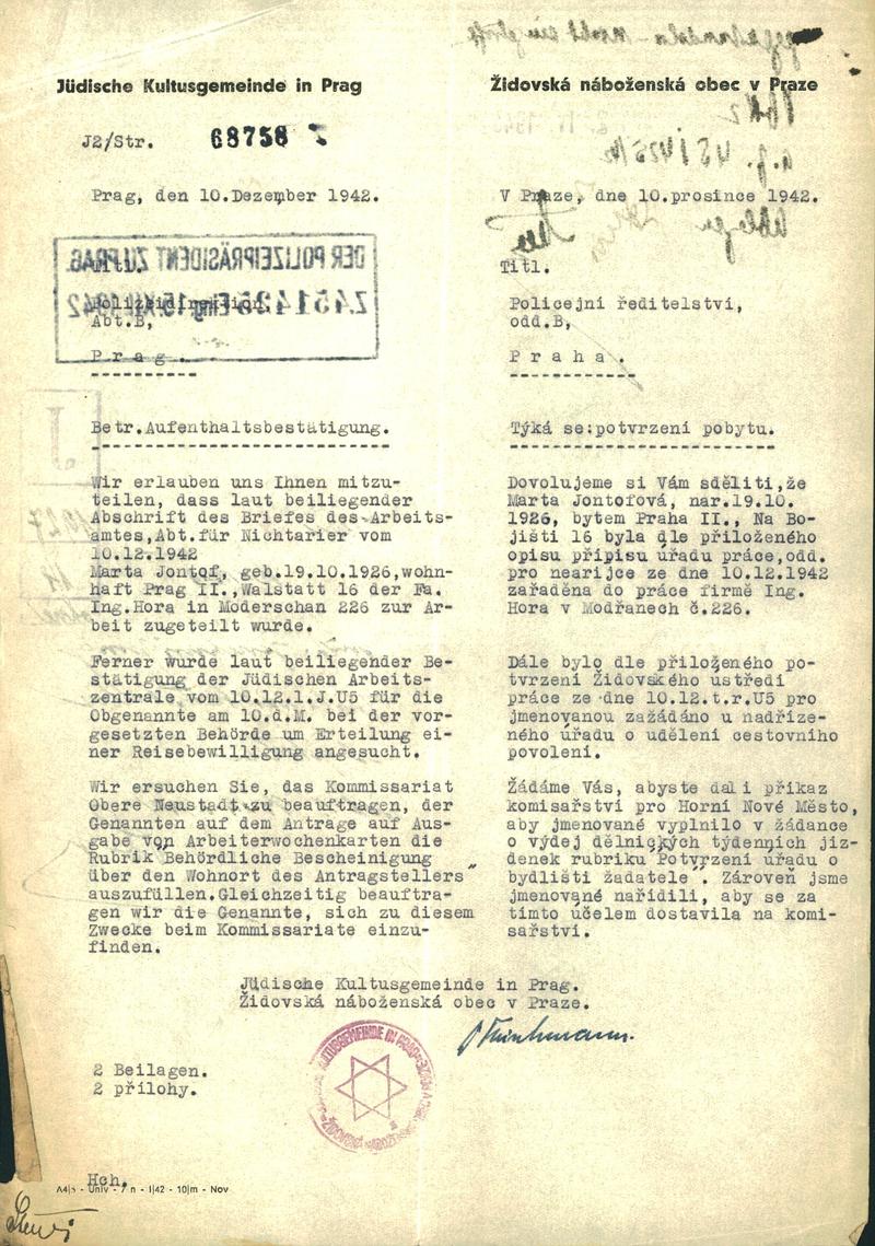 National archives Prague > Police Directorate Prague > 1941-1950 > J > Jontofová Marta