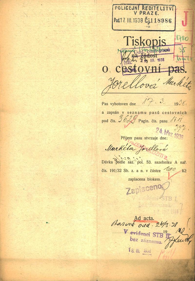 Jorellová Markéta: Žádost o vydání cestovního pasu